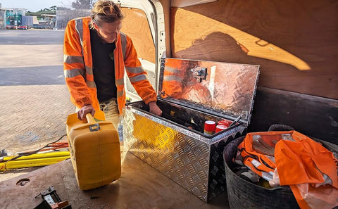 - COMFORTABLE ACCESS: For added convenience, the toolbox has a hinged lid that opens easily and provides quick access to its contents. Two gas springs support gentle opening and hold the lid securely in place while you load or unload it.