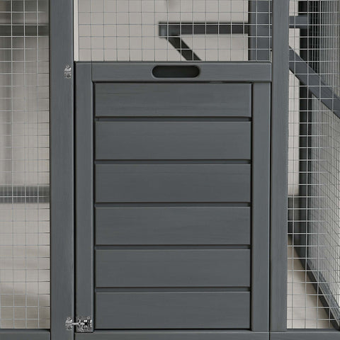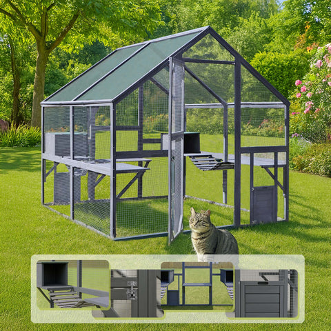 A large door allows for easy access, making maintenance and cleaning simple and efficient. Thoughtfully designed, this enclosure keeps cats protected while giving owners peace of mind. With a user-friendly assembly process, this outdoor cat pen can be set up quickly in your garden or on your patio.