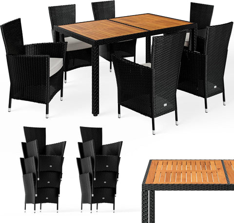 Practical set – the garden furniture set includes 6 stackable chairs including 7 cm upholstery, can hold up to 160 kg, and a table, 150 x 90 x 75 cm. The space-saving lounge furniture allows flexible use in the garden, on the balcony or terrace - ideal for versatile outdoor use