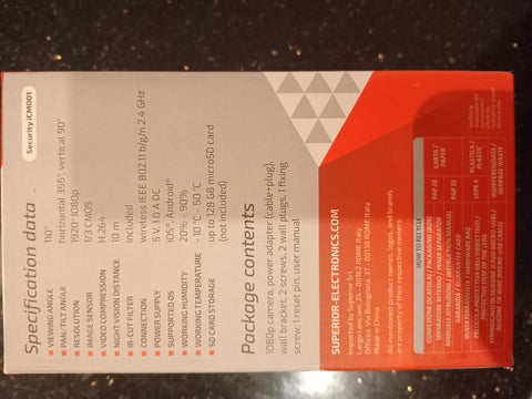- Functions: live video, recording, movement, microphone, night mode, alarm